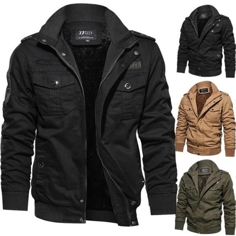 Diese robuste Herrenjacke im Militärstil vereint Funktionalität, Komfort und lässiges Design. Hergestellt aus hochwertiger Baumwolle mit weichem Plüschfutter, sorgt sie für angenehme Wärme und Strapazierfähigkeit – ideal für Arbeit, Freizeit oder Outdoor-Aktivitäten.