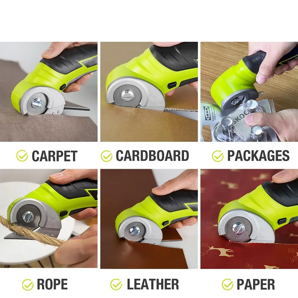 Ausgestattet mit einem leistungsstarken 4V-Motor, einem Sicherheitsstartsystem und einer austauschbaren Doppelklinge bietet dieses Werkzeug Präzision, Komfort und Sicherheit – ideal für DIY-Enthusiasten, Schneider, Verpackungsprofis und kreative Bastler.