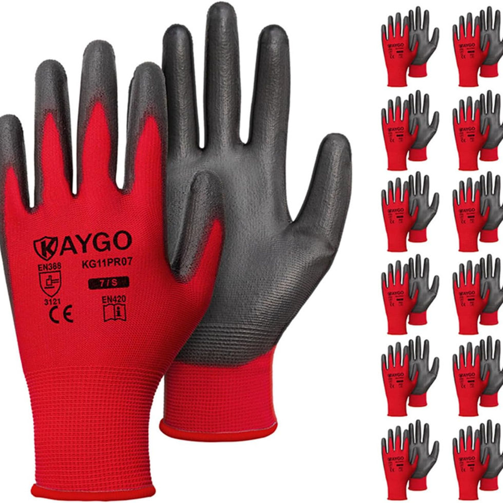 KAYGO KG11PB, Sicherheitshandschuhe mit PU-Beschichtung, 12 Paar, nahtloser Str