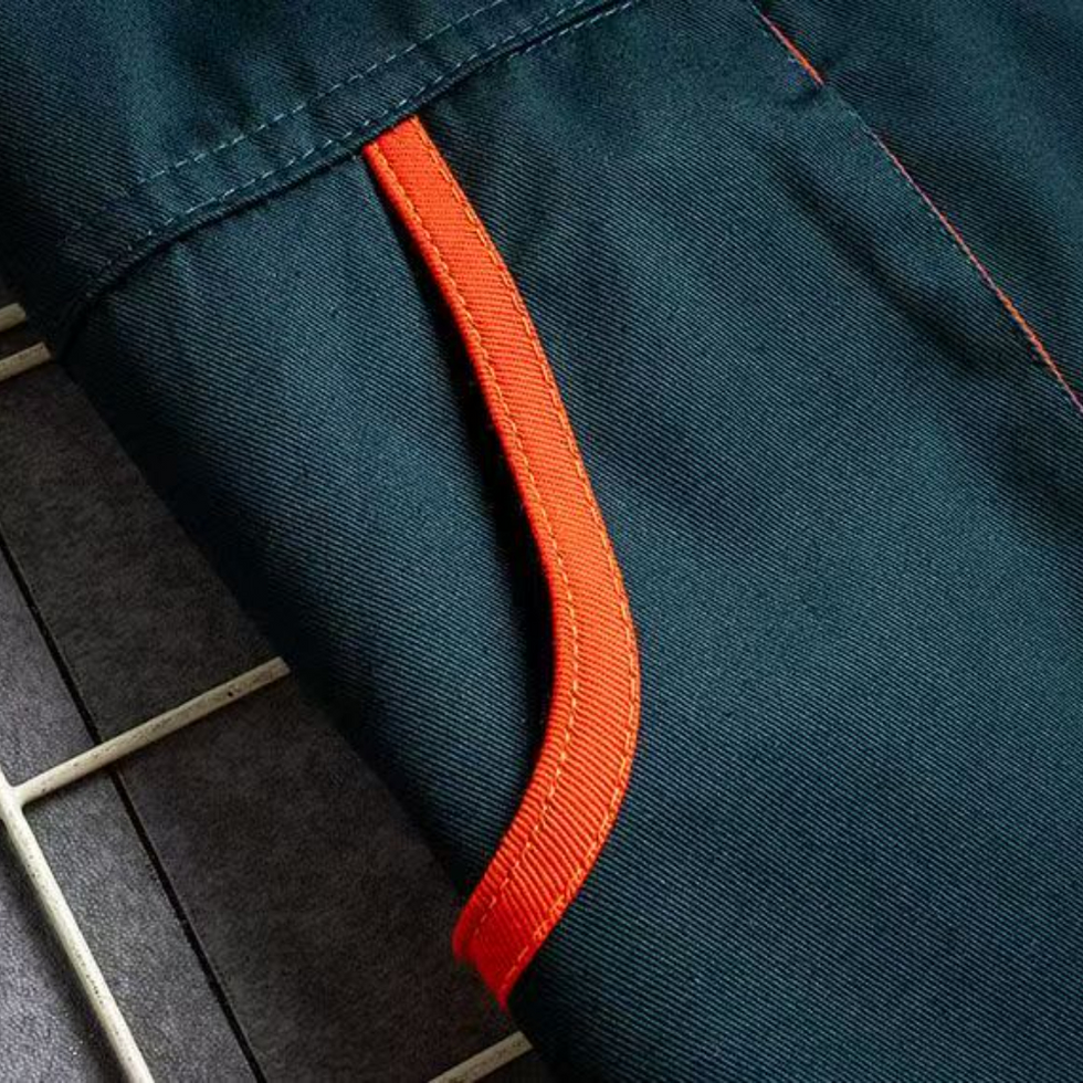 Die Latzhose bietet durch ihre verstellbaren Träger und mehreren Cargotaschen maximale Bewegungsfreiheit und Stauraum für Werkzeuge oder persönliche Gegenstände. Ideal für Arbeiten im Innen- und Außenbereich – von der Baustelle bis zur Werkstatt.
