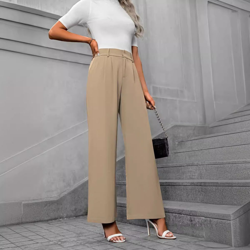 P4521 Damen arbeits hose Breites Bein Lässige lange Hose mit elastischer Taille