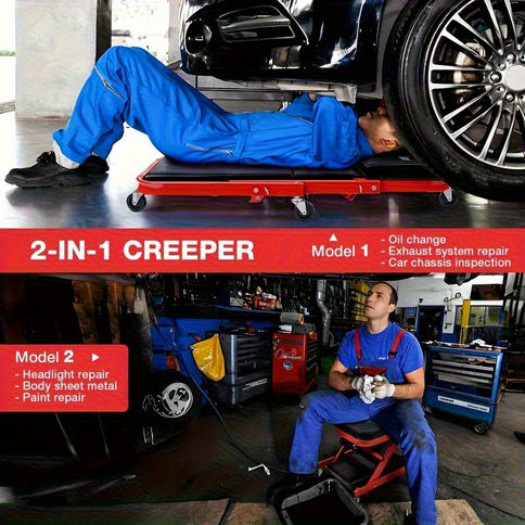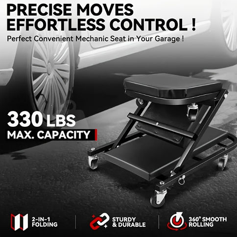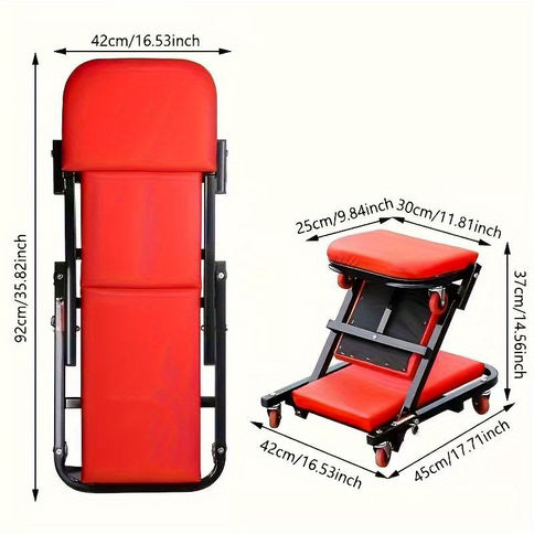 Dank des Z-förmigen Klappdesigns kann der Tisch flexibel als rollender Hocker, Werkzeugablage oder höhenverstellbare Arbeitsfläche genutzt werden. Die 6 Schwerlastrollen sorgen für maximale Beweglichkeit, selbst bei voller Beladung, während das industrielle Design in Rot-Schwarz für ein professionelles Erscheinungsbild in jeder Werkstatt sorgt.