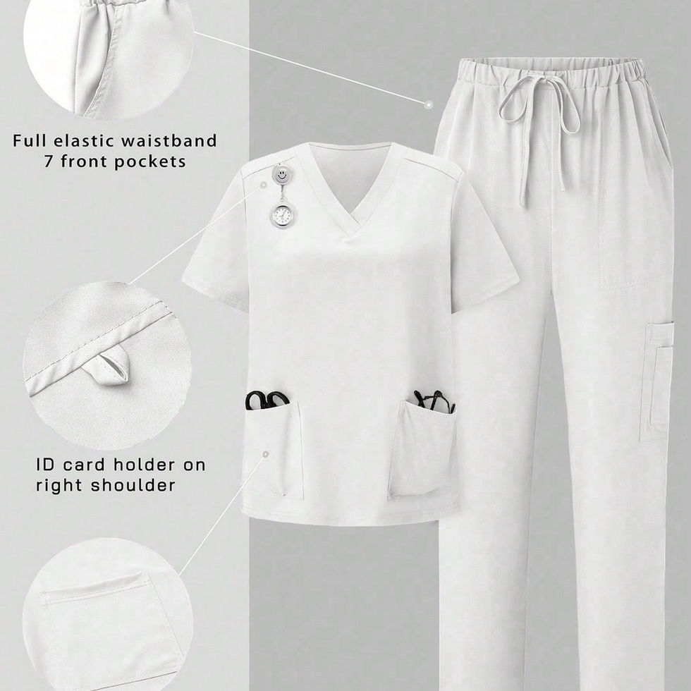 TaskEZ Damen Sommer-Scrub-Set – Kurzarm-Uniform mit Taschen