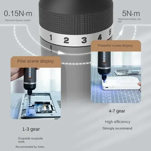 Mit seinem leistungsstarken 8 Nm Drehmoment, einem 320 U/min Motor und einem Type-C Schnellladeanschluss ist dieses Elektrowerkzeug stets bereit – kabellos, leicht und zuverlässig. Das integrierte LED-Licht sorgt für klare Sicht auch in dunklen Arbeitsbereichen und leuchtet automatisch für 15 Sekunden nach.